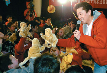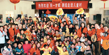 北方网消息:昨天下午,天津SOS儿童村迎来了一批特殊的客人,他们是来自中央电视台《同一首歌》剧组的演员们,一行包括蔡国庆、张行、顾海滨、刘纯燕、王璐瑶、金波、李丹阳、朱晓琳、黄鹤祥、中国力量等,他们以文艺联欢会的形式,与儿童村的孩子们一同度过了一个温馨、愉快的下午。