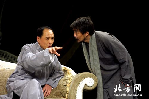 昨天的演出中,张艳秋较好地把握了陈白露思想演进过程,演来张弛有度,其他演员也经过对角色的认真剖析和体会,较为鲜活地展示了不同人物的艺术形象,从而使该剧的演出达到撞击心扉的审美效果。演出结束后,任鸣登上舞台与演员一起谢幕,与观众亲切交流,场景十分感人。人艺此次排演《日出》,得到了天津市青年文艺人才工程的支持与资助。(摄影:马成)