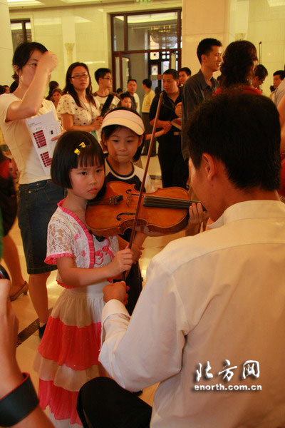 对于已经有一定音乐基础的孩子来说,家长们更希望他们通过这次“触摸乐器”活动,了解更多的乐器。这种方式更加直接,孩子能更容易了解每种音乐的音色。另外,“打开音乐之门”活动还可以扩宽孩子们的知识面,学到一些音乐知识。乐手们对孩子们提出的疑问,都非常耐心地解答,还为他们示范,孩子们被美妙的音乐所吸引,争先恐后地请教乐手问题。