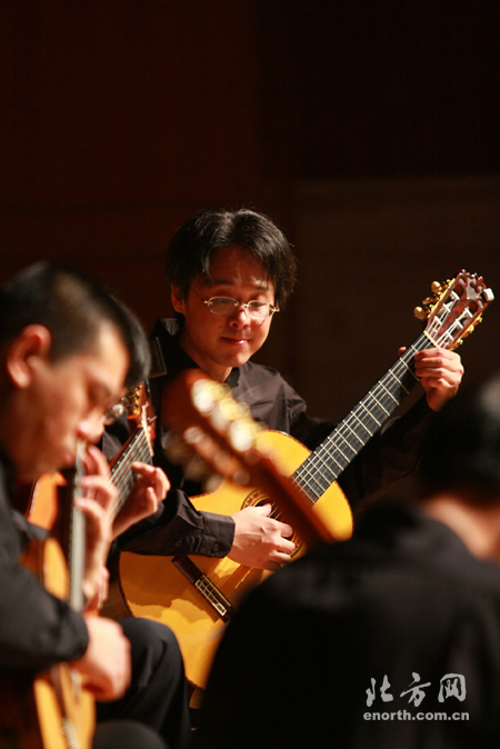他们此次为天津听众演奏的曲目有泰莱曼的《音乐会四重奏》,热烈而富有感染力的扫弦使之非常流行;《阿尔汗布拉宫的回忆》,这是被尊称为"近代吉他音乐之父"的西班牙著名吉他作曲家兼演奏家泰雷加的一首最有名的代表作品;泰萨的《旋转木马组曲》,音柔美迷人,气质优雅;《摩尔人的飞毯》,其动人的旋律让人久久难以平静;除此之外还有:皮亚佐拉的《咖啡馆1930》和《自由探戈》、埃尔加的《爱的致意》、比才的《前奏曲》、《哈巴涅拉》(选自歌剧《卡门》)、麦尔斯的《卡瓦蒂娜》、巴切贝尔的《D大调卡农》以及普霍尔的《灰暗与光明》。