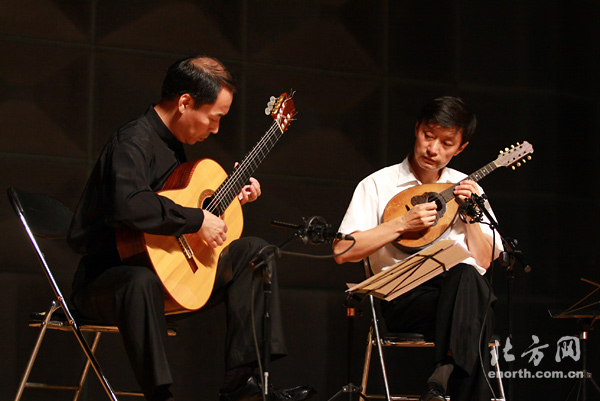 两位优秀吉他演奏家:王震、赖康康都是国内古典吉他界的大腕。王震是我国首批赴西班牙学习吉他专业的留学生,北京爱乐吉他室内乐团艺术总监。1995年,在西班牙加泰罗尼亚国际吉他音乐节中,王震应邀举办了古典吉他独奏、重奏音乐会。当地电视台和巴塞罗那《Valles》杂志作了报道和专访。赖康康是王震的学生,毕业于中国歌剧舞剧院吉他专业。在王震的带领下,该团已在国内许多城市巡回演出。