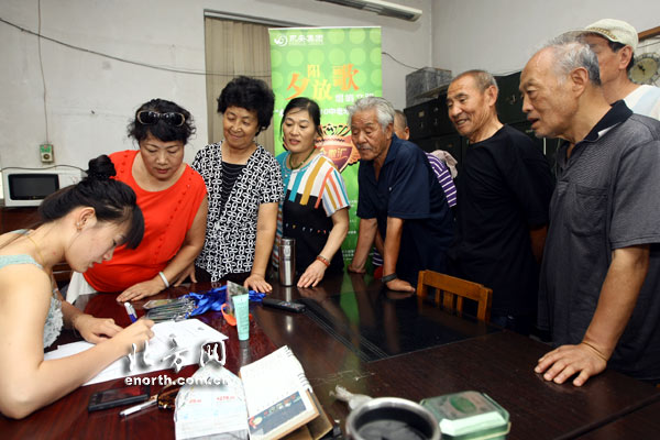 天津北方网讯:由天津市文明办、市文化广播影视局主办,北方网、市群众艺术馆、天津永安集团永安公墓承办的2010金歌汇——“永安杯”中老年歌唱大赛自启动以来,反响强烈,市民纷纷到各区县文化馆现场报名。8月3日,记者在东丽区文化馆看到,工作人员八点半刚一上班,就有不少市民排起长队,等候报名。