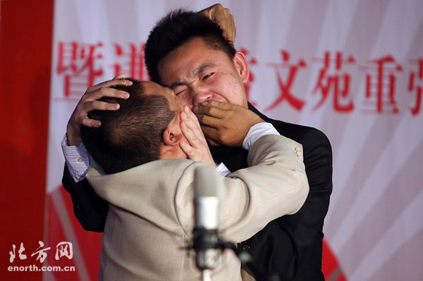 尹笑声、赵津生的登台引发了当晚演出的首个高潮,他们本场专场共为大家带来了三个段子,《五星楼》被二位稍加改动,绘声绘色的融入了一些新的元素,让人耳目一新;老段子《打灯谜》引得观众大笑不止;压轴好戏《学西河》则把相声“说学逗唱”的精髓表现得淋漓尽致,现场掌声如雷。