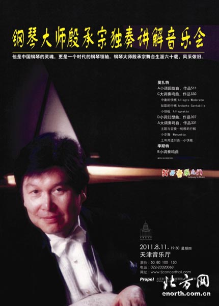 钢琴系列音乐会在每一年的“打开音乐之门”系列音乐会都是最受欢迎的演出单元,深受广大音乐爱好者的喜爱,8月11日,天津音乐厅迎来了她的老朋友——钢琴大师殷承宗先生,为钢琴迷们奉献一场“莫扎特李斯特作品专场音乐会”。