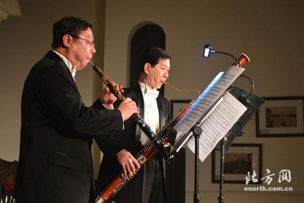 天津北方网讯:虽然乍暖还寒时节天津的天气还有些许的寒冷,但是春天的脚步越来越近。3月28日,北方网乐迷会的网友们在天津西岸艺术馆欣赏了“双簧管、大管、钢琴三重奏音乐会”,莫扎特、贝多芬、肖邦、格林卡的作品相继呈现,令网友们感叹大师的作品果然百听不厌。