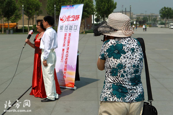 天津北方网讯:由天津市永安公墓独家冠名的“永安杯”第五届天津市中老年歌舞大赛中,有这样一群人,他们不是参赛的选手,也不是工作人员,但每次都会准时到达赛场,他们从镜头中看比赛,会发现不一样的美。这群人就是忠实的“永安杯”拍客团。