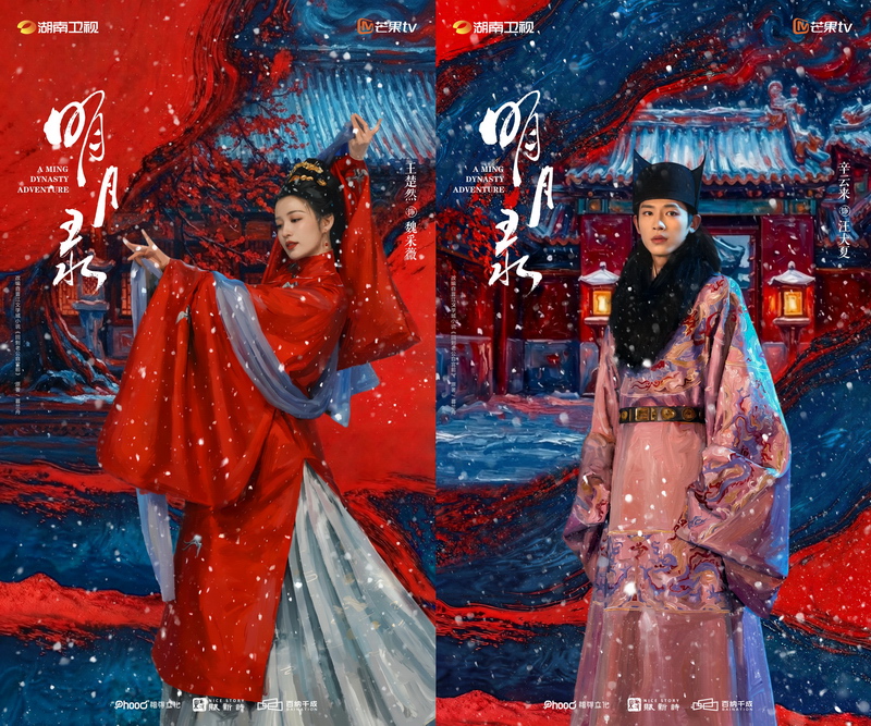 官宣当日,剧集官方发布系列物料。两世尘缘版首发预告以魏采薇、汪大夏的“两世守护”为主线,展现二人跨越双重时空、身份关系轮转,依旧相互扶持、双向奔赴的真挚情感;覆雪白首版cp单人海报以氛围感抽象红蓝撞色为亮点,暗含人物前世命运的交织变幻,大雪纷飞、红梅绽放,映照着两人身侧,一袭红衣、一曲雪舞、一瞥惊鸿,“深宫守望共白首”的宿命意境尽显。此外,由主要角色组成的四人“大明热血小分队”以角色妆造依次惊艳亮相,手握弦月光影与剧集“明月”意象呼应,引发广泛关注与热烈讨论。网友们纷纷表示,明制妆造亮眼,期待剧集早日上线。